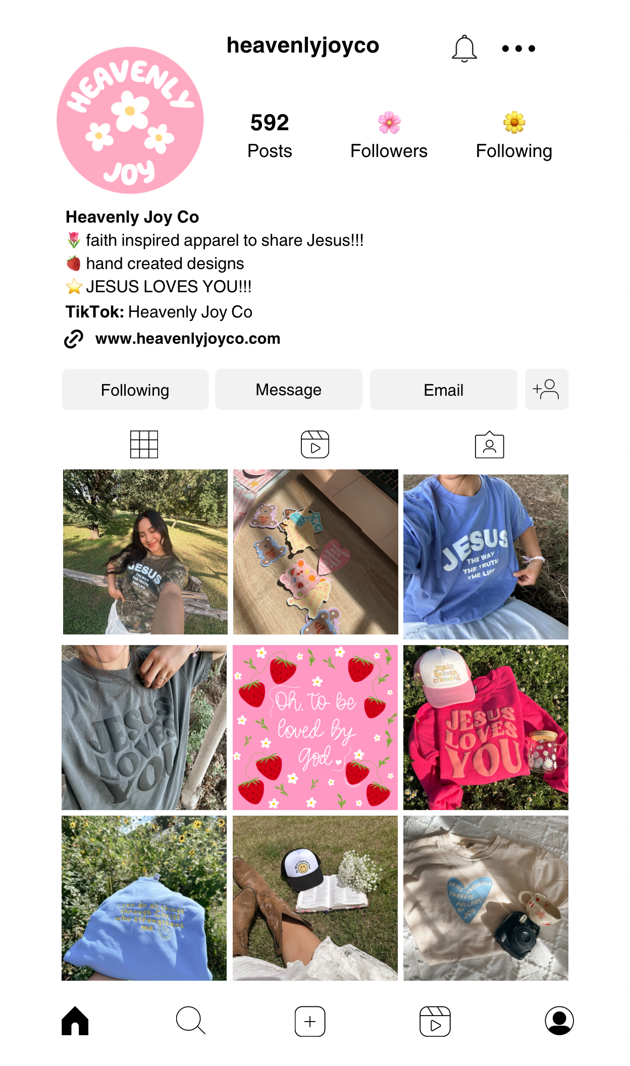 Hi, I'm Kimberly and I'm so happy you're here. I'm 29 years old and I am the owner of Heavenly Joy. 1 year ago I decided to start this small business and 1 year later its become a blessing and beacon of joy in my life as I get to share God through apparel. I have 5 doggies, I love scrapbooking, creating digital artwork, I play piano, love photography and love watching shows like GOT or cheesy hallmark shows (LOL)